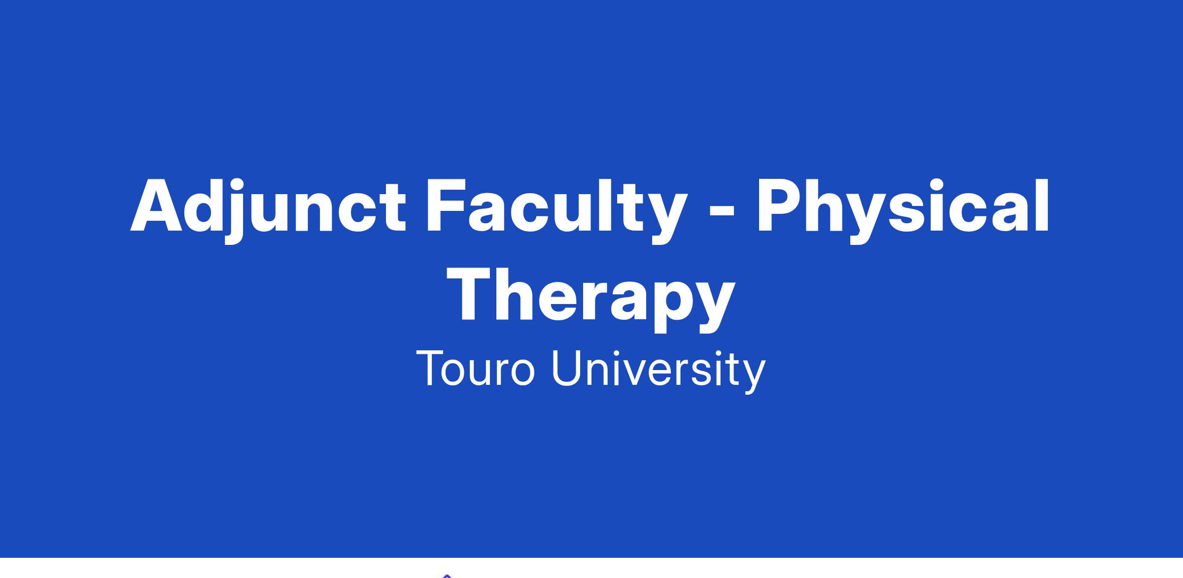 The Touro University Doctor of Physical Therapy Program Manhattan Campus has an ongoing need for highly qualified adjunct faculty to teach a variety of courses in the DPT curriculum. Applicants with expertise in Musculoskeletal PT, Neuromuscular PT, PT Administration, Advocacy, as well as basic sciences such as Physiology and Exercise Physiology are encouraged to apply. This is a pooled position from which adjunct faculty will be hired. As openings occur we will draw candidates from this pool. Applicants whose area of expertise meets the needs of the program will be contacted