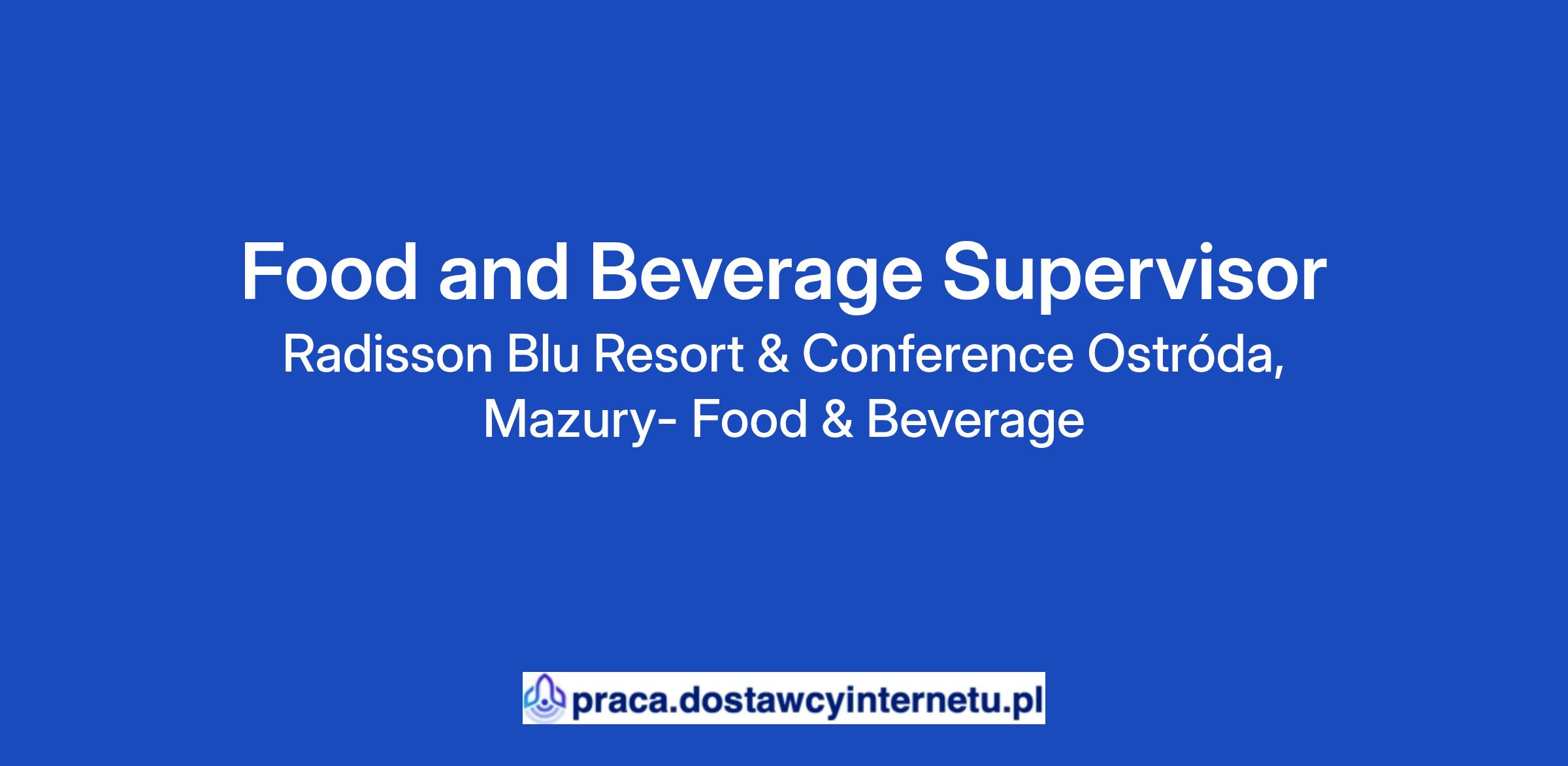 Obecnie poszukujemy Food & Beverage Supervisora, który dołączy do naszego dynamicznego zespołu w Radisson Blu Resort & Conference Center, Ostróda Mazury!
