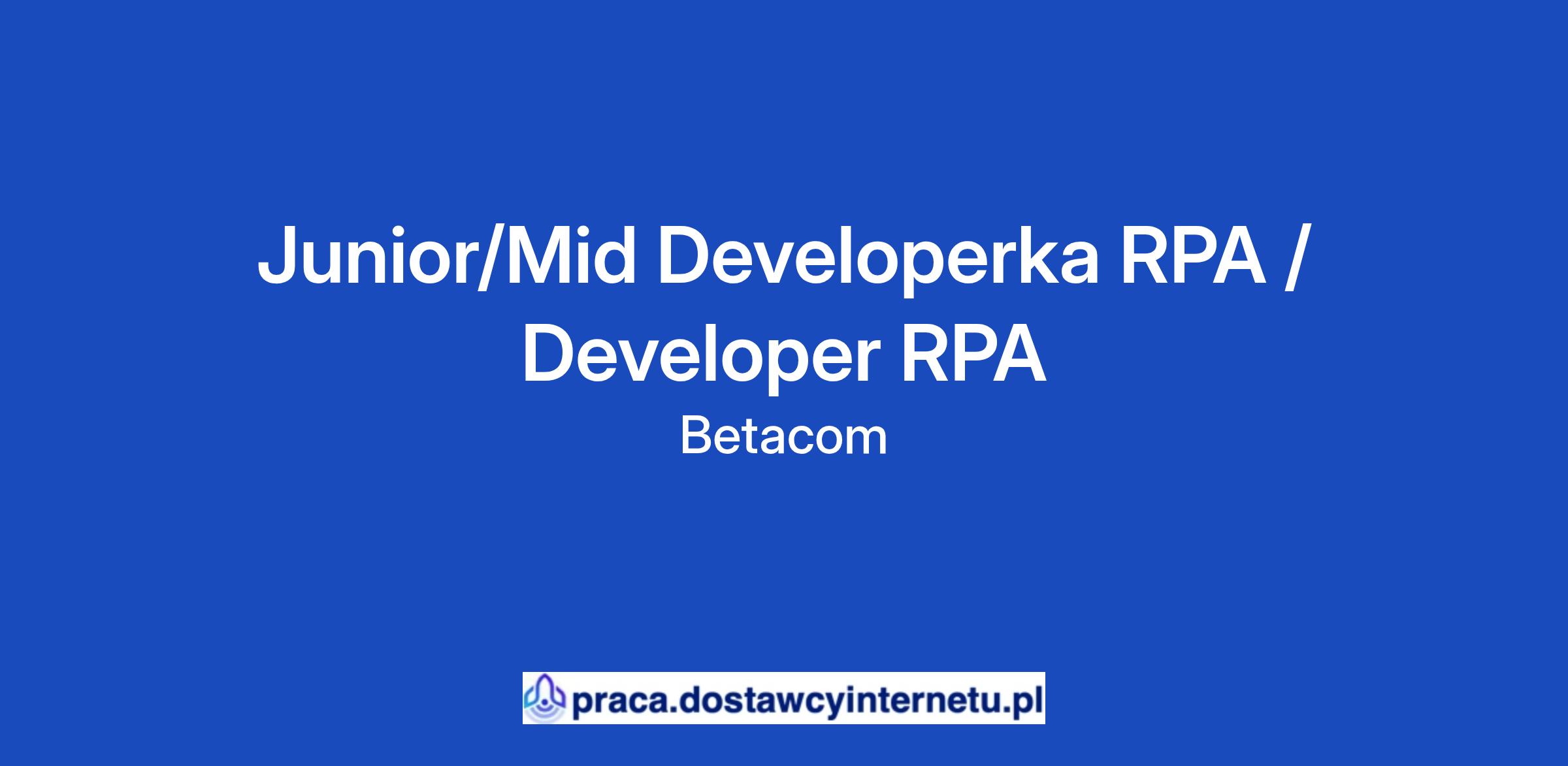 Z uwagi na prężny rozwój naszego zespołu poszukujemy  Junior/Mid Developera RPA / Developerki RPA.